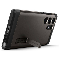 Hülle aus der Serie Tough Armor der Marke Spigen ist neu m Firmenbezug. Seine zweiteilige Konstruktion besteht aus abriebfestem Thermoplast und einem verstärkenden Polycarbonatrahmenneuj. Das Innere des Gehäuses ist mit technologischem Schaumstoff gefüllt, der einen zusätzlichen Schutz vor Stößen oder Stürzen des Geräts bietet.