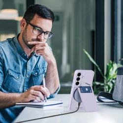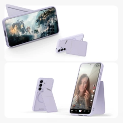 - Verstellbarer vertikaler Ständer - Dank des integrierten Ständers können Sie Ihr Gerät bequem aufstellen Samsung Galaxy S24 vertikal in einem Winkel von bis zu 135°. Dies ist die perfekte Lösung, wenn Sie frei Videoanrufe tätigen oder andere Inhalte in vertikaler Ausrichtung konsumieren möchten.