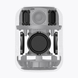 Das kompakte Gerät ist eine Ikone der Handwerkskunst. Es vereint hervorragende Leistung und ein attraktives Erscheinungsbild. Es hat eine charakteristische zylindrische Form mit einem Gehäuse aus Aluminiumlegierung und stoffbesetzten Elementen. Es sieht sehr kompliziert aus und ist daher eine Dekoration für jedes Zuhause.