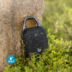 Mit dem praktischen und stabilen Karabiner lässt sich der Lautsprecher an Rucksack, Fahrrad oder Gürtel befestigen – so hast du ihn immer griffbereit!