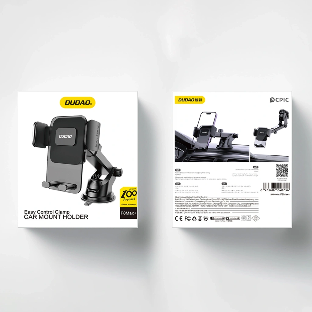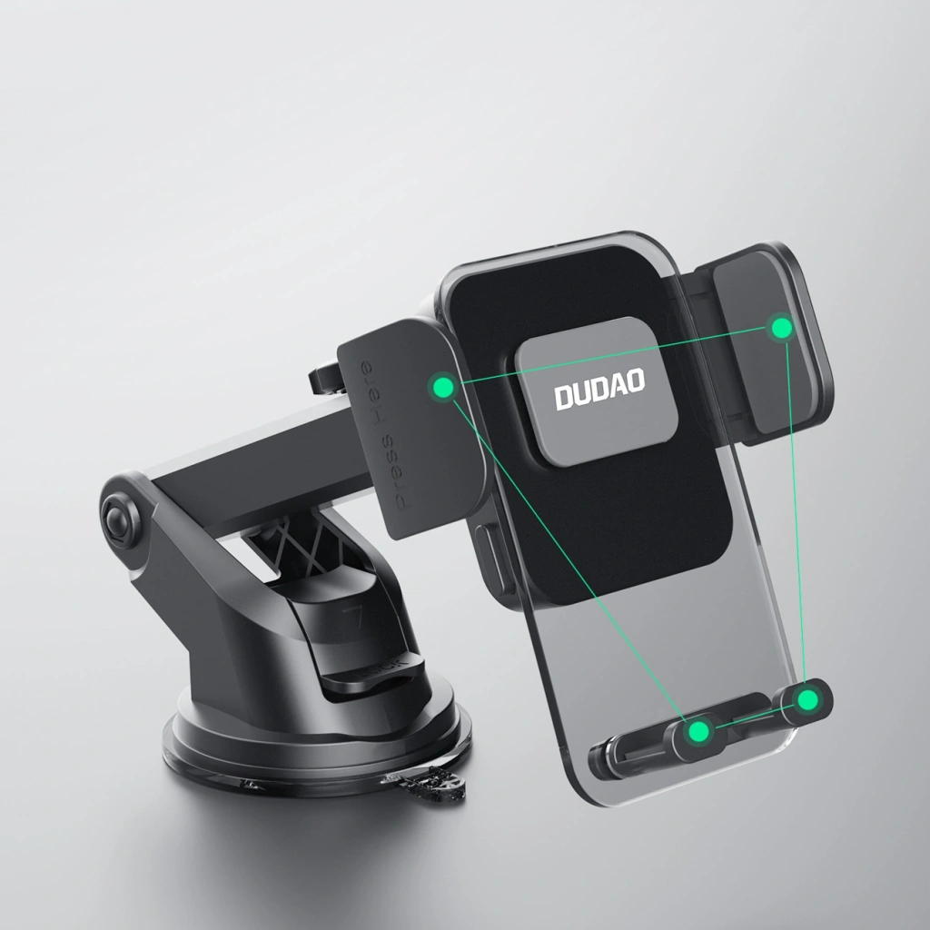 Dudao F8Max+ to solidny uchwyt samochodowy typu wysięgnikowego, który zapewnia stabilne i wygodne mocowanie telefonu. Dzięki mocnej przyssawce i blokadzie bezpieczeństwa uchwyt można zamontować zarówno na szybie, jak i na desce rozdzielczej. Konstrukcja z 4-punktowym podparciem gwarantuje pewne trzymanie telefonu, a możliwość obrotu o 360° umożliwia dopasowanie kąta widzenia do własnych potrzeb. Prosty system zacisku pozwala na szybkie umieszczenie i wyjęcie telefonu jedną ręką. Czarna kolorystyka nadaje uchwytowi elegancki i uniwersalny charakter, pasujący do każdego wnętrza samochodu.