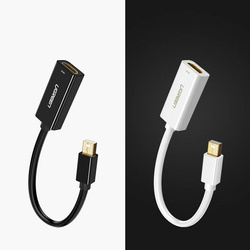 Adapter der Marke Ugreen, mit dem Sie Bildschirme mit einem HDMI-Anschluss an Geräte anschließen können, die mit Mini DisplayPort ausgestattet sind. Dank dessen genießen Sie ein stabiles Bild mit einer Auflösung von bis zu 1080p 60 Hz. Es sorgt für eine perfekte Synchronisation von Ton und Bild. Dank der vergoldeten Stecker ist das Kabel korrosionsbeständig und das robuste Gehäuse schützt es auch bei intensiver Nutzung vor Beschädigungen.