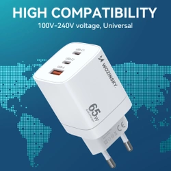 Wozinsky CGWCW 65W USB-A / 2 x USB-C GaN-Wandladegerät – Weiß