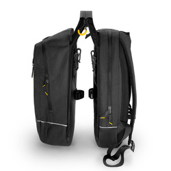 Eine doppelte Fahrradtasche, die sich in einen Rucksack verwandeln lässt