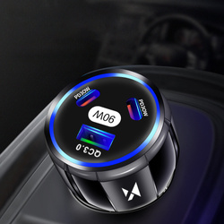 Wozinsky WCCCA Autoladegerät 2x USB-C 1x USB-A 90W PD QC - Schwarz
