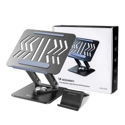 Wozinsky Laptopständer – die perfekte Lösung für alle, die Wert auf Komfort, Stabilität und modernes Design legen. Dank hochwertiger Materialien wie Kohlenstoffstahl und Aluminiumlegierung ist der Ständer äußerst langlebig und gleichzeitig leicht und einfach zu tragen. Aufgrund seiner breiten Kompatibilität passt es an Laptops mit einer Bildschirmdiagonale von 11 bis 17,3 Zoll und ist somit äußerst universell einsetzbar. Die 360°-Drehung sorgt für Komfort im Büro und zu Hause, und dank des doppelten Winkelverstellmechanismus können Sie den Bildschirm in die bequemste Position bringen. Die Basis ist mit Belüftungslöchern ausgestattet, die die Kühlung des Geräts unterstützen, und die rutschfeste Silikonbasis garantiert Stabilität während des Gebrauchs. Darüber hinaus ist der Ständer klappbar, sodass Sie ihn auf jede Reise mitnehmen können.