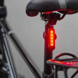 - Mehr Sicherheit durch ein Vier-Modi-Rücklicht . Es erhöht die Sichtbarkeit und informiert andere Verkehrsteilnehmer über die Absichten des Fahrradfahrers.