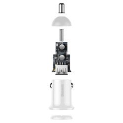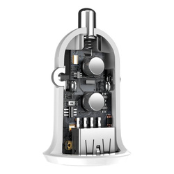 A small car charger may be powerful. The example is Baseus product equipped with two USB charging ports. The total power it may use to charge two devices is even 4,8A. Fast and safe thanks to as many as 6 smart protection units.