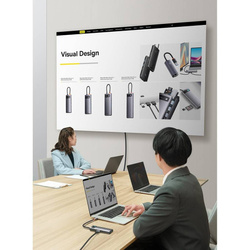 Baseus Metal Gleam Series HUB 7 in 1 USB Type C Docking Station - 2 x HDMI / 3 x USB 3.2 Gen. 1/1 x Power Delivery / 1 x RJ-45 Ethernet Gray (WKWG040113)