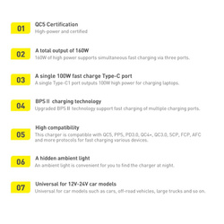 • Baseus Qualcomm® Quick Charge ™ 5 Technology Multi-Port Fast Charge Car Charger C + C + U 160W set Gray (with Baseus Xiaobai series fast charging Cable Type-C to Type-C 100W (20V / 5A) 1m Black)