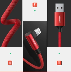 Ugreen US299 60555 cable with Lightning (angled) and USB-A connectors, MFi certified, 1 m long - red