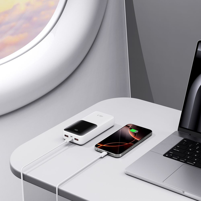 The power bank is equipped with two USB-A ports, one USB-C port and a Micro-USB port for maximum compatibility with various devices. The sleek and modern design with screensm LED allows you to easily monitor the battery charge level, and the sturdy, compact design guarantees durability and convenience. In addition, advanced protection systems protect against overheating, overcharging and zwaRCering, ensuring safety during daily use.