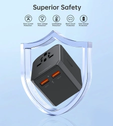 Choetech PD6041 travel charger with USB-C and USB-A connectors and 3 plugs (US, EU, UK, AU) - black