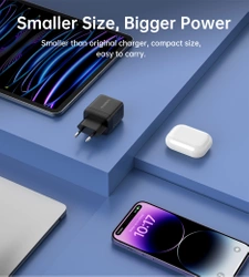 The Choetech PD6052 mains charger has two USB-C ports and allows you to charge a smartphone, tablet or headphones with a power of up to 35 W. It allows you to charge two devices at the same time. GaN technology makes the charging process effective and completely safe. A clear display informs about the power of the charger.