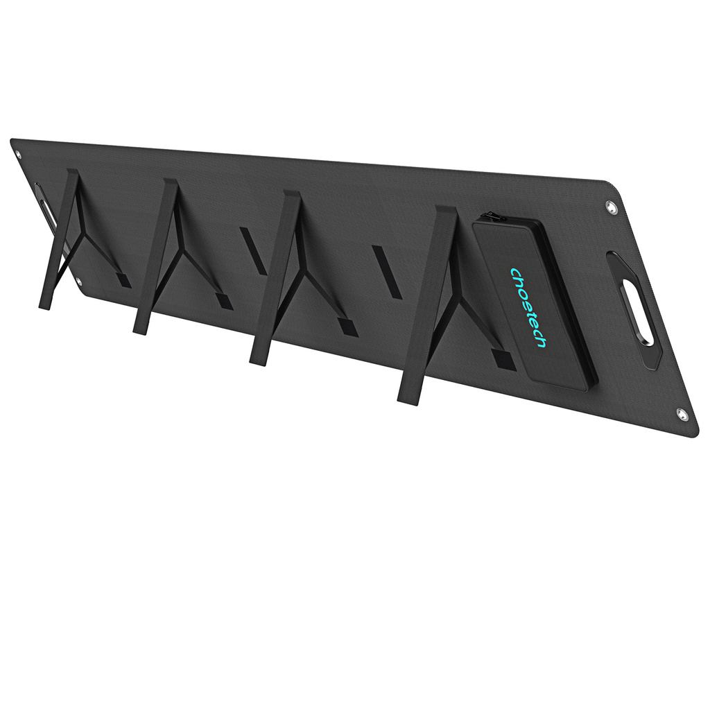 Are you interested in a portable solar panel? Choose Choetech SC016. This is a foldable 300 W solar charger that is perfect as a solar kit for a camper. It will be a great choice for everyone who appreciates high power, compact dimensions and low weight. You can use it during all kinds of trips: not only with a camper, but also with a caravan, bus or car for a foreign holiday. It will convert solar energy into electricity in all weather conditions. Thanks to 1200D material, the Choetech 300W solar charger is waterproof and durable. It has a solid, strong construction that you can adjust at a 45-degree angle.