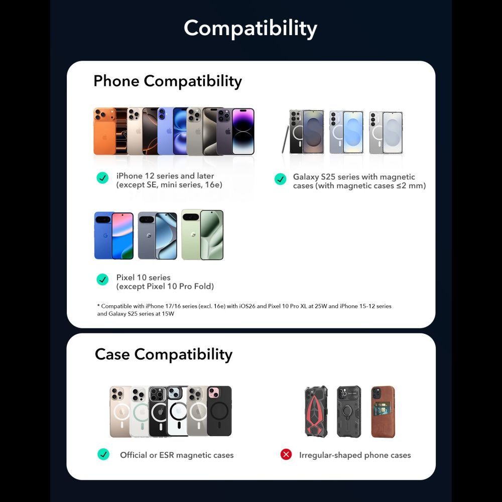 ESR OmniLock Qi2.2 is an advanced mount car MagSafe with 25W fast charging, designed for maximum convenience and safety while driving. The officially certified charger wireless Qi2.2, featuring CryoBoost technology, provides stable, fast and safe charging for MagSafe compatible devices , while actively cooling phone to maintain peak performance.