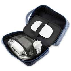 The interior of the bag is extremely functional - numerous compartments allow you to comfortably store necessary small accessories. The bag has an external port terminated with a USB connector, while the interior of the bag hides cable terminated with a USB connector.