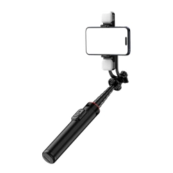 WC12YDS Telescopic Selfie Stick with Dual Lamp - 1/4 Thread Tripod and Bluetooth 5.2 - Black