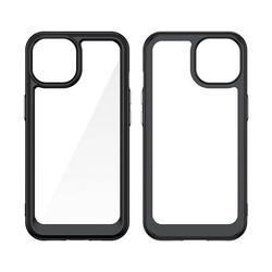 - Hybrid case with a rigid back and a flexible frame.