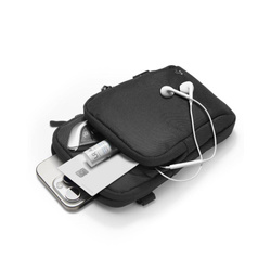 It has two pockets that allow you to store both phone with a maximum size of 6.9 inches, as well as small items such as keys, headphones or a credit card. The whole bag is closed with a heavy-duty zipper, and the strap shoulder strap is adjustable and features sturdy fasteners for comfort and stability.