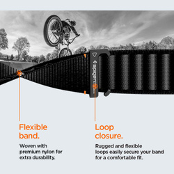 Strap Spigen The WBF1 is a sleek and modern accessory made of durable nylon that combines sporty character and minimalist style. Featuring a sturdy hook buckle and loop closure, it provides a secure and stable fit for everyday use and intense activities.