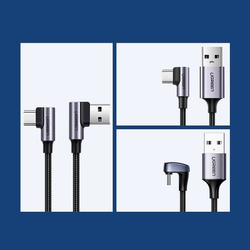 - USB - USB Type C cable with plugs bent at an angle of 90 degrees.