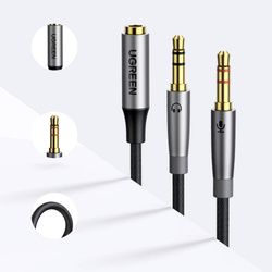 • Ugreen AUX splitter cable 3.5 mm mini jack (female) - 2x 3.5 mm mini jack (male - microphone and headphones) silver (AV193 50255)
