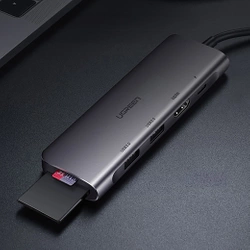 Increase the functionality of your USB-C port with the UGREEN adapter. The device features 2 USB 3.0 A inputs, two USB-C - one of which is a PD port, HDMI 4K input, and SD, and TF card readers.