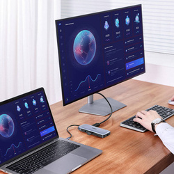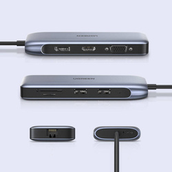 Ugreen multi-functional HUB 9in1 USB Type C - HDMI, DP, VGA, 2 x USB, RJ45 Ethernet, SD / TF card reader, USB Type C PD gray (CM274)