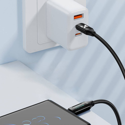 If you are looking for a cable that can charge both a phone and a tablet or laptop, and also informs about the charging parameters and simultaneously transmits data - choose the Wozinsky cable. It can charge up to 100 W and transfer photos or videos at a speed of 480 Mbps. The braid of the Wozinsky cable is made of durable material, which makes it resistant to twisting, tangling and mechanical damage.