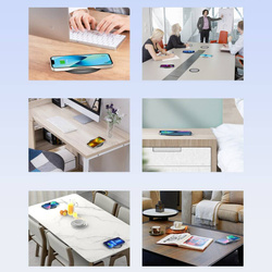 Choetech T590-F es un moderno cargador de inducción bajo mostrador diseñado para la renovación inalámbrica de energía . Fabricado con materiales de alta calidad, gadget funcional, equipado con un sistema de gestión inteligente que protege el equipo contra sobretensión, sobrecarga o sobrecalentamiento. Este último también está protegido por una serie de respiraderos ubicados en la parte inferior del accesorio . El cargador está diseñado para montarse debajo de la mesa, por ejemplo, un escritorio (grosor máximo de 3 cm) mediante una cinta 3M o dos tornillos (accesorios incluidos). Gracias al sensor incluido en el conjunto, puede indicar perfectamente la posición correcta del cargador montado debajo de la mesa. ¡La mayor ventaja de esta solución es la falta de otro dispositivo y sin cables en la encimera!