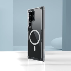 Nature Pro Magnetic zostało wykonane z połączenia dwóch materiałów. Krawędź etui pokrywa termoplastyczny poliuretan (TPU) natomiast płaską część pokrywa twarda poliwęglanowa (PC) płytka. Pierwszy z materiałów cechuje się wysoką elastycznością, przy zachowaniu dobrej przejrzystości i odporności na uszkodzenia. Komory powietrzne umieszczone na rogach dobrze absorbują uderzenia, doskonale chroniąc urządzenie. Seria Nature Pro Magnetic to nowa odsłona klasycznego już etui marki Nillkin, które od wielu lat zaspokaja potrzeby konsumentów na całym świecie i pozwala chronić ich telefony. Produkt wyróżnia się kompatybilnością z systemem MagSafe, co pozwala na jeszcze wygodniejsze zasilanie urządzenia.