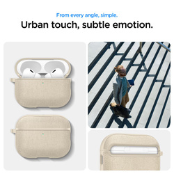Elegante funda Urban Fit para Apple AirPods Pro de Spigen. Funda está fabricado con una duradera combinación de policarbonato (PC) y nailon, que ofrece una excelente protección de los auriculares frente a daños y comodidad para el uso diario. Los orificios cortados con precisión permiten conectar el set de carga sin problemas, y la compatibilidad total con la carga inalámbrica garantiza la máxima funcionalidad.