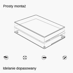 Obudowa niezawodnie chroni przed zarysowaniami i drobnymi uderzeniami, przylegając ściśle do pokrywy laptopa.