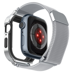 Kit de protección elegante y atemporal funda + correa de Spigen. Metal Fit "Pro" combina un marco protector en pantalla fabricado en aluminio ligero y duradero y TPU que absorbe los golpes. Los bordes elevados protegen pantalla tu smartwatch, mientras que los recortes de precisión permiten un acceso rápido a los botones y sensores.