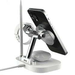 Wielofunkcyjny magnetyczny uchwyt zapewniający 4w1 bezprzewodowe ładowanie to idealny towarzysz do codziennego użytku. Jego prosty i pionowy design nie tylko ułatwia przechowywanie i transport, ale także sprawia, że korzystanie z niego to prawdziwa przyjemność.