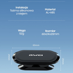 • AWEI magnetyczny uchwyt samochodowy X20 na kokpit szay/metal gray