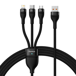 Baseus Flash Series Ⅱ Cable de carga rápida 3 en 1 USB-A a USB-C / Micro-USB / Lightning 66W 480Mbps 1.2m Negro