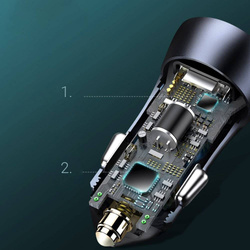 Do you need a car charger to quickly charge two devices at the same time? When you drive, connect them to Baseus product equipped with USB and USB-C ports. It supports quick charging protocols – Xiaomi and Samsung – because it has a built-in BPS II fast technology.