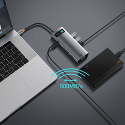 • Baseus Metal Gleam 9in1 multifunctional HUB USB Type C - 3x USB 3.2 Gen 1 5Gbps / USB Type C PD 100W / VGA Full HD 60Hz / HDMI 4K 30Hz / czytnik kart TF i SD / RJ45 1Gbps gray (CAHUB-CU0G)