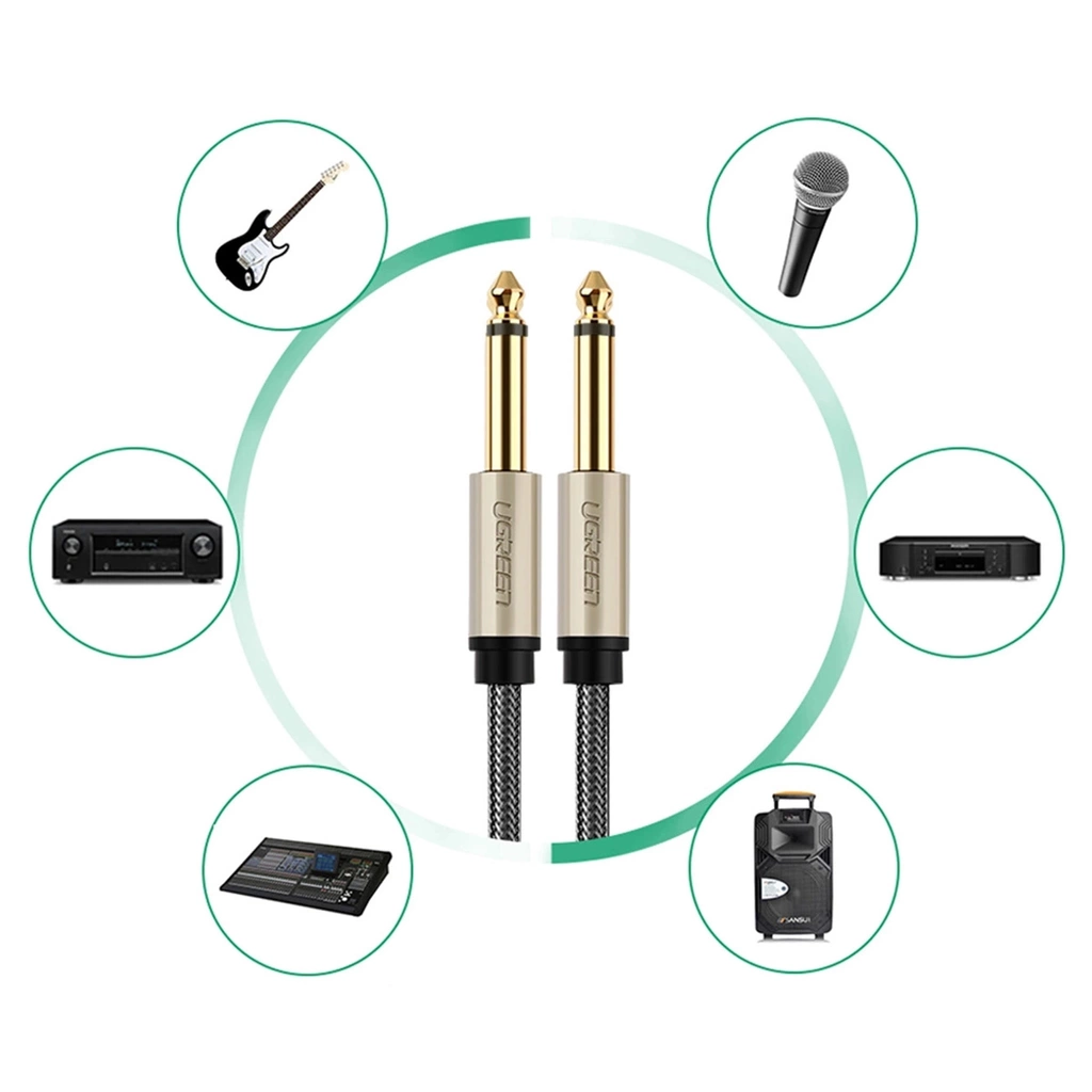 The 6.5mm to 6.35mm UGREEN AV128 audio Cable offers great quality, clear sound. It is compatible with many instruments and devices, giving you a new, unforgettable musical experience. High-class silver-plated conductor and gold-plated connectors guarantee fast, reliable signal transmission.