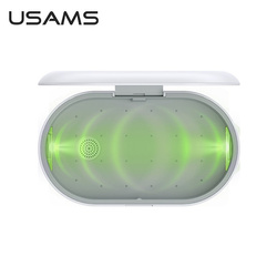 Usams US-ZB138 multifunctional mini UV sterilizer with wireless charging function for smartphones.