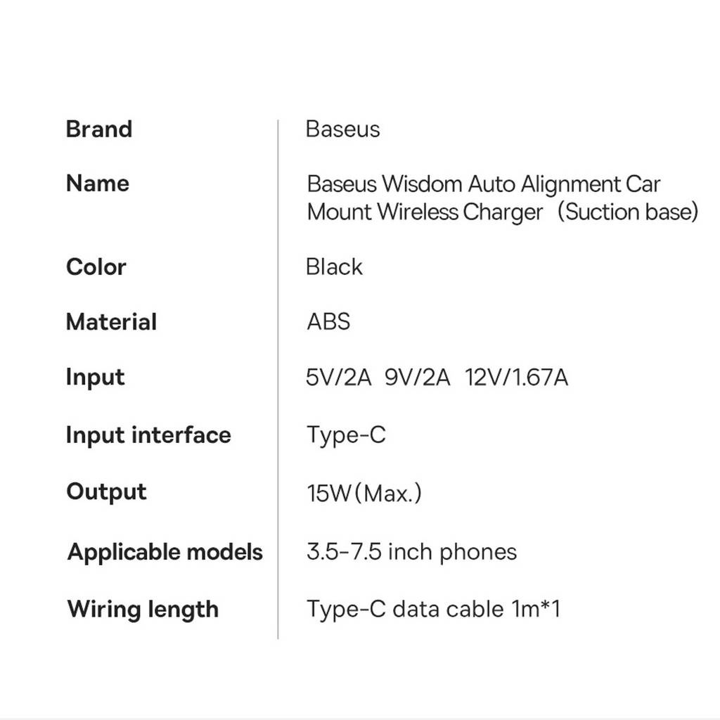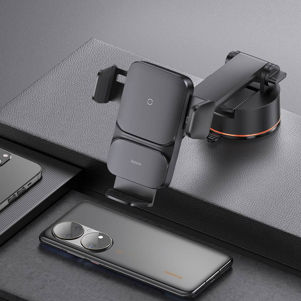 Cargador de inducción Baseus Wisdom soporte para teléfono de coche en el salpicadero (ventosa) negro