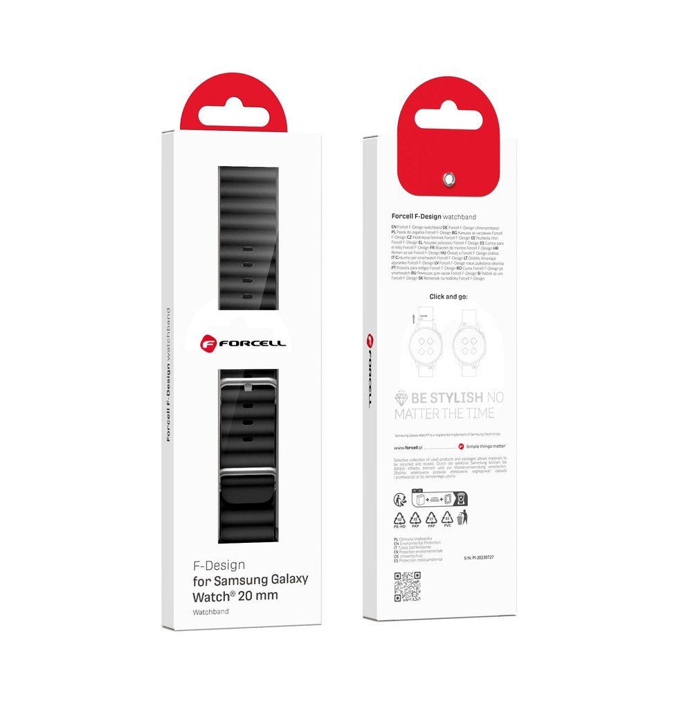 Pasek Forcell F-Design wyróżnia się nie tylko klasycznym designem, ale też uniwersalnością. Można go nosić z dowolnym zegarkiem Samsung Watch o szerokości mocowania 20 mm. Ponadto nada się do każdego typu garderoby, od sportowej po elegancką.