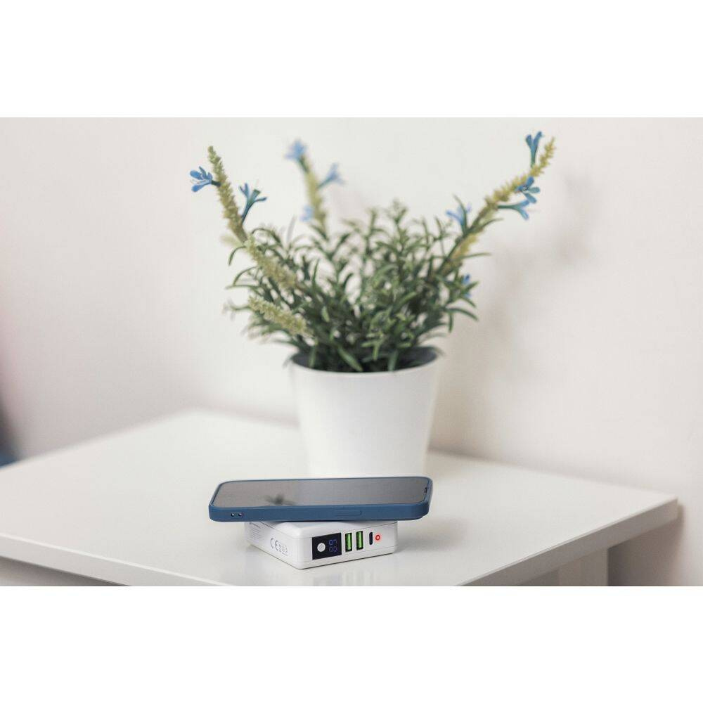 Doskonały zestaw podróżny: wielofunkcyjna ładowarka FORCELL 4w1. Posiada trzy porty ładowania: 2x USB oraz 1x USB-C i power bank. Pozwala na ładowanie indukcyjne.