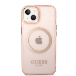 Guess GUHMP14SHTCMP iPhone 14 6,1" różowy/pink hard case Gold Outline Translucent MagSafe