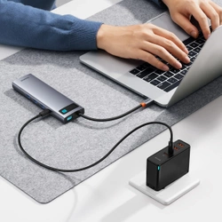 Hub 11w1 od Baseus to idealny towarzysz pracy, nauki i rozrywki. Używaj go w domu, w biurze lub w podróży i ciesz się szerokim wachlarzem możliwości. Jeżeli Twój tablet lub telefon obsługują OTG, możesz podłączyć do niego zewnętrzne dyski, co pozwoli komfortowo zrobić więcej miejsca w pamięci. Za pomocą huba możesz również podłączyć do laptopa urządzenia peryferyjne, co zwiększy efektywność Twojej pracy.