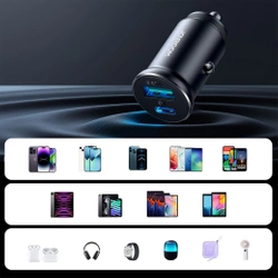 Joyroom JR-CCN05 mini cargador para coche con potencia de hasta 30 W con 2 puertos USB-A y USB-C - negro
