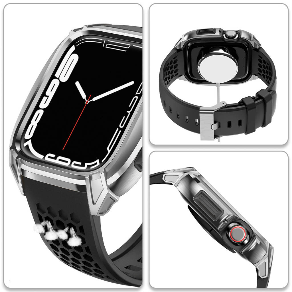 Apple Watch 2 en 1 Ultra, SE, 8, 7, 6, 5, 4, 3, 2, 1 (49, 45, 44, 42 mm) serie Kingxbar CYF148 con caja plateada de acero blindado