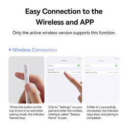 ¡La experiencia del iPad se vuelve aún más fluida y placentera que nunca! Gracias al stylus de Baseus , podrás disfrutar de un accesorio estético y fiable que se adapta perfectamente a tus necesidades. Realizar actividades cotidianas como escribir o dibujar no te supondrá ningún problema. El lápiz óptico admite la escritura en diferentes ángulos: 45°, 60 ° y 90°, lo que afecta la precisión y el grosor de la línea. Escribes sin molestias y el lápiz óptico deja un rastro perfectamente uniforme en la pantalla. Además, el producto ha sido equipado con una punta pasiva para el funcionamiento básico de la pantalla.